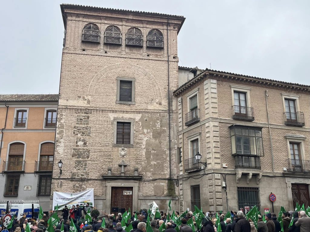 En Toledo cientos de agricultores y ganaderos alzaban esta mañana la voz por el campo en Toledo, pidiendo las mismas reglas de juego para competir con otros países. Durante casi dos horas en la Plaza de San Vicente, han protestado bajo el lema: «Si el campo no produce, la ciudad no come».»No vamos a decir que nos dejen hacer lo mismo», explica José María Fresneda, «nosotros queremos una agricultura marcada por la seguridad alimentaria y el acuerdo UE-Mercosur atenta con la soberanía y la seguridad alimentarias».