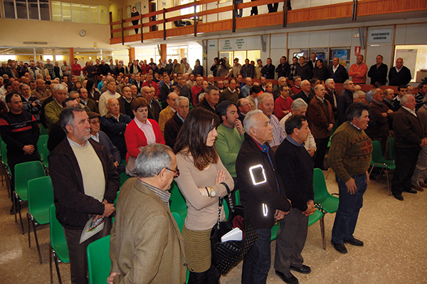 Unos 400 agricultores han asistido a la reunión convocada por APAG para informar sobre las ayudas de Pago Único y resto de ayudas directas a la Agricultura y Ganadería este año 2014, entre otros asuntos. La reunión comenzó con la petición a los asistentes  por parte del presidente de APAG, Antonio Zahonero, de un minuto de silencio en memoria de las víctimas del atentado del 11M del que hoy se cumplen 10 años.