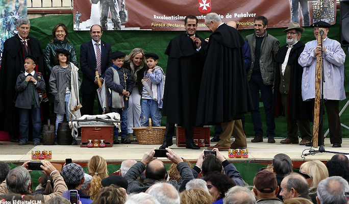 El presidente de la Asociación de Apicultores, Angel López Herencia, impuso la tradicional capa castellana al torero. La plaza mayor de Peñalver se llenó de público para fotografiar la torero, mientras se sentabaja en la báscula romana para la ceremonia de pesaje. En la entrega del premio estuvo presente el presidente de APAG Antonio Zahonero.