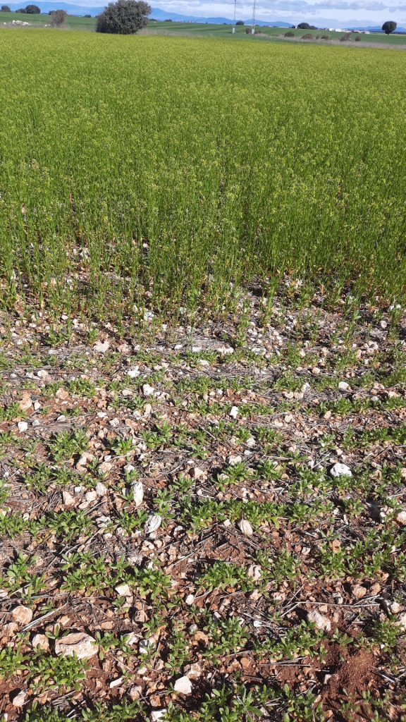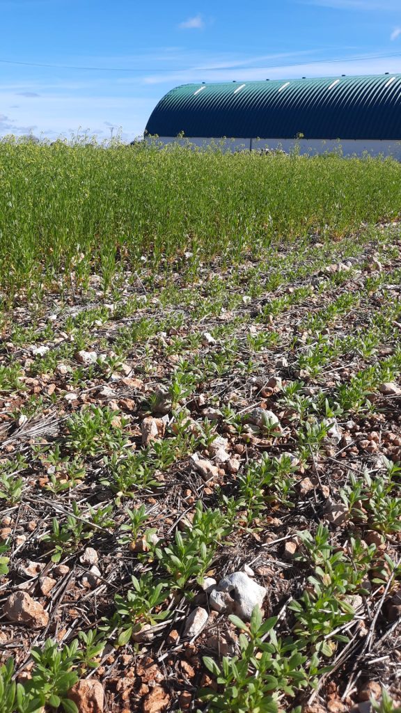 En noviembre de 2024 se realizaron en esta parcela las siembras de dos variedades de camelina -V1 invierno y V2 primavera- en 2 fechas de siembra -ahora y la próxima a finales Enero, con diferentes dosis de abonado de fondo y de abonado de cobertera. En total 18 ‘microparcelas’ que podrán visitarse en esta jornada de campo demostrativa. También se hablará de este cultivo energético como alternativa para la rotación y de su rentabilidad y mercados.