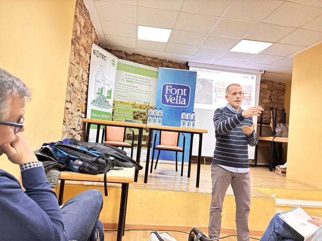 Por parte de EuroChem Iberia, participaron José Carlos Aguirre e Israel Carrasco, responsable de I+D de EuroChem, que presentó los resultados de los ensayos «on-farm» realizados en el marco de este convenio, que demuestran como, con la sustitución del abonado convencional por el abonado con ENTEC® se ha mejorado sustancialmente los rendimientos de trigo y cebada, disminuir el lavado de nitratos a las aguas superficiales y profundas de las que se abastece la planta de Font Vella, además de reducir la emisión de gases de efecto invernadero