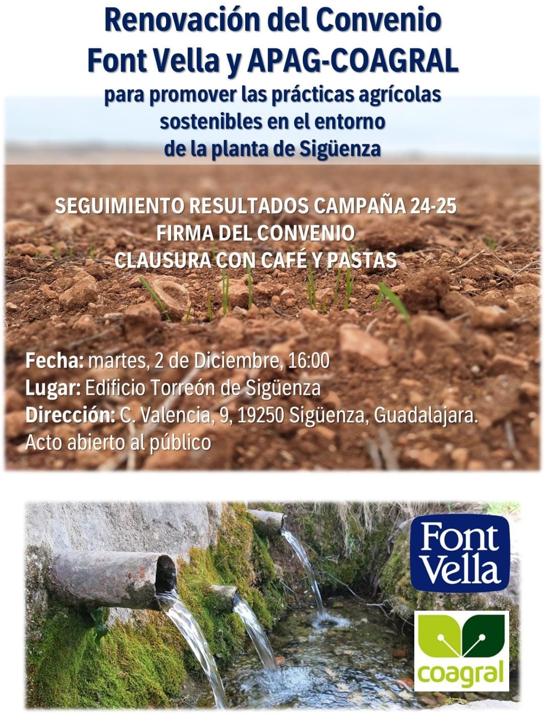 El día 2 de Diciembre tuvo lugar en Sigüenza la jornada anual de presentación de resultados, en este caso de la campaña 2024-2025, del convenio entre APAG-Coagral y Font Vella para promover las prácticas sostenibles en el entorno de la planta de Sigüenza.