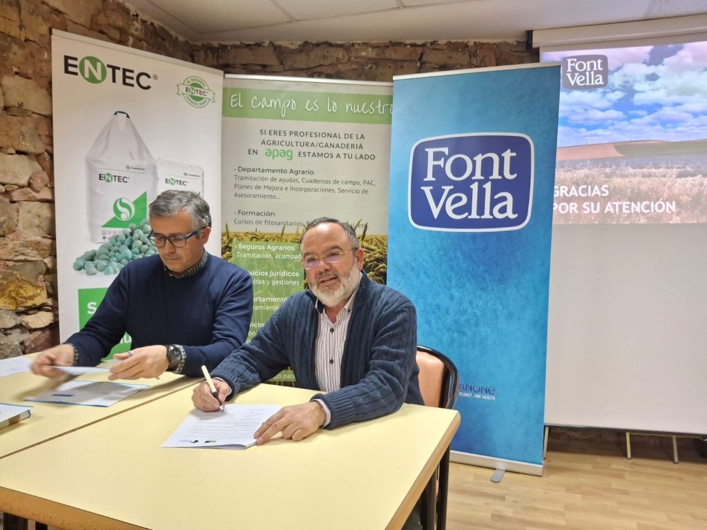 Acto seguido se procedió a la firma de la renovación del convenio que ambas entidades mantienen desde 2020 para mejorar las prácticas en el abonado de las parcelas cercanas al manantial de Font Vella, con la finalidad de proteger el patrimonio natural y minimizar el impacto medioambiental.