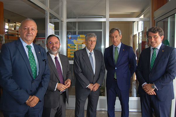 A la izquierda el presidente y secretario general de APAG con el presidente de Caja Rural CLM, Javier López y directivos de la Entidad.