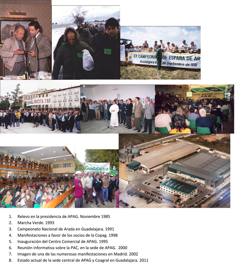 Tres generaciones de Agricultores y Ganaderos han pasado por APAG con cosechas buenísimas y con otras catastróficas, lo cual ha servido para que APAG haya ido macerando su realidad, siendo una organización con mayoría de edad, consolidada y enraizada en la vida político-social, no sólo en la provincia, sino en nuestra región y en nuestra nación. APAG es una realidad, una institución madura que no se ha quedado sólamente en una organización agraria, es algo más. Ha constituido unos servicios, que son envidiados fuera de nuestros límites provinciales y es comercialmente referencia del mercado de Guadalajara.