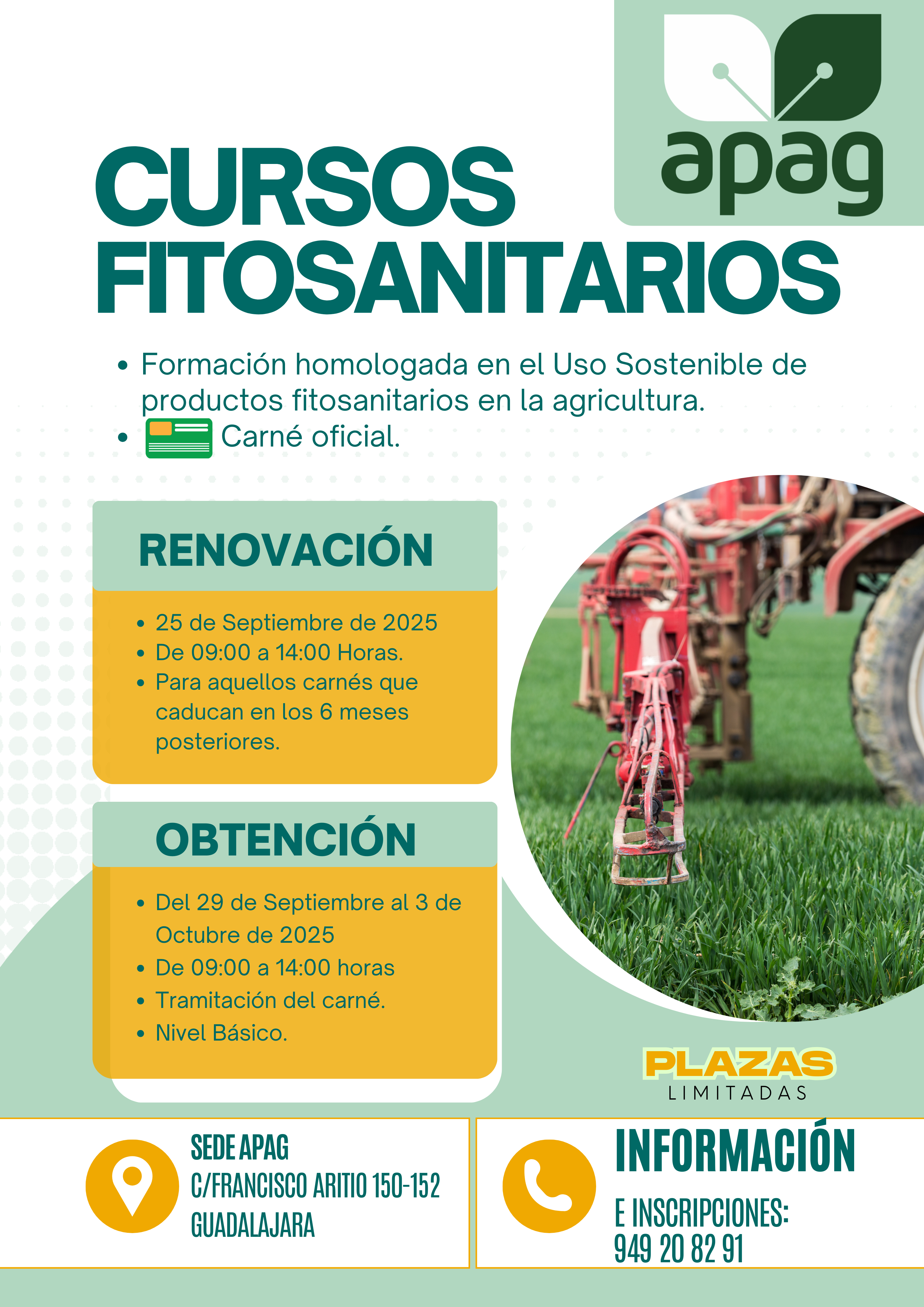 APAG ha organizado dos nuevas formaciones en materia de fitosanitarios, tanto para la renovación del carné como para la obtención del mismo.