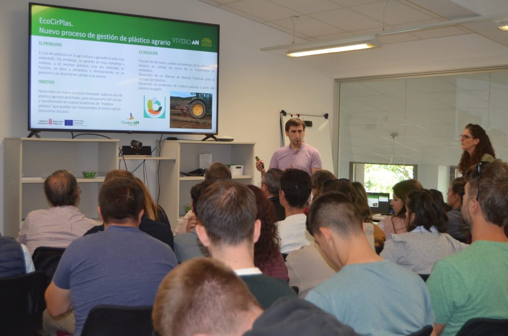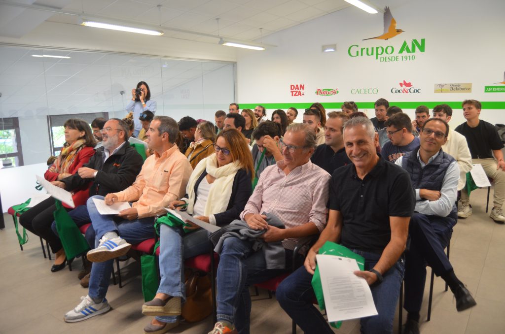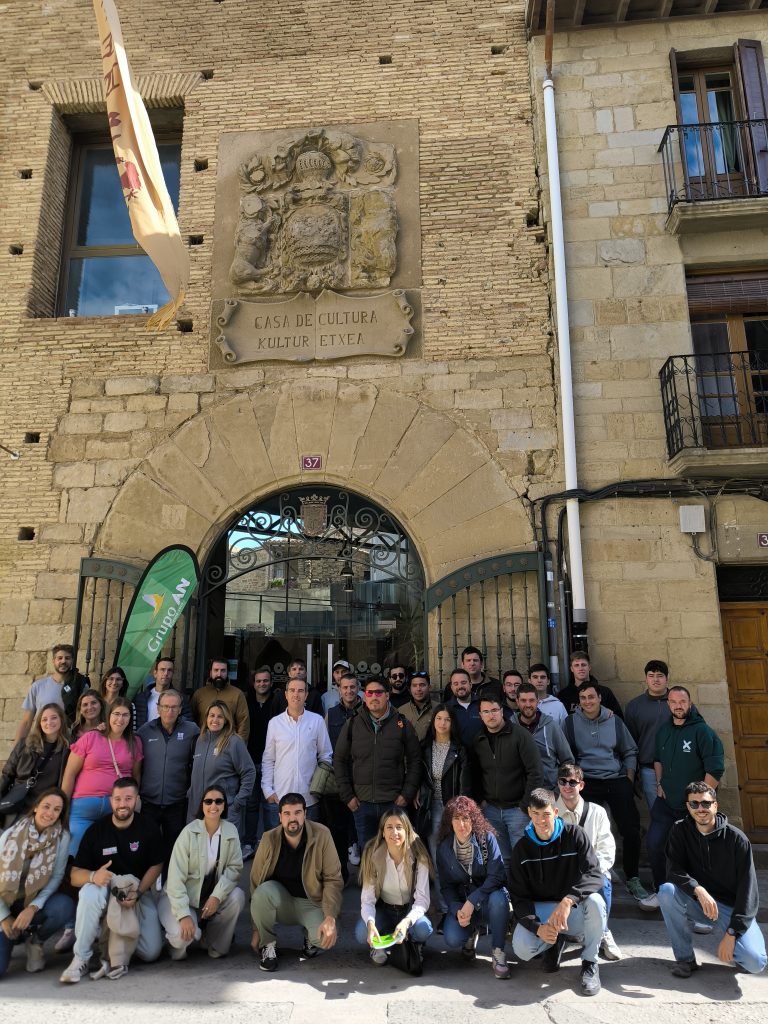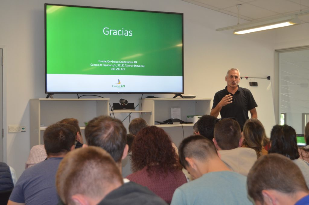 Al día siguiente, los jóvenes conocieron las oficinas centrales de Grupo AN en Tajonar, donde mantuvieron un encuentro con la directora de la Fundación AN, Maite Murruzabal, quien explicó el funcionamiento del Grupo – cooperativa agroalimentaria de segundo grado que cuenta con más de 30.000 socios de 17 cooperativas asociadas y opera en ocho comunidades autónomas- y sus diferentes secciones,: cereales, suministros, energéticos, piensos, frutas y hortalizas, avícola, seguros, tiendas…. También conocieron los programas de innovación y digitalización del grupo gracias a las explicaciones de su responsable Sergio Menéndez.