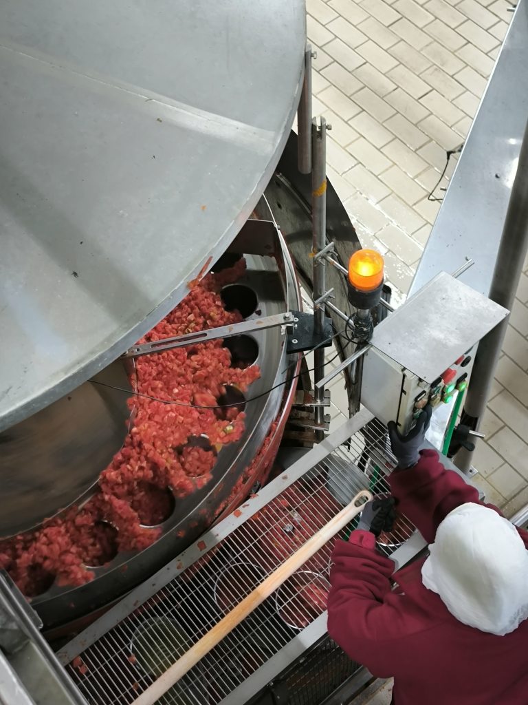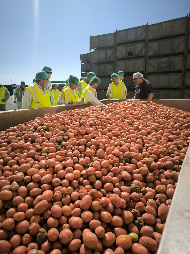 Acto seguido el grupo se trasladó hasta la localidad de Castejón para visitar la planta de Conservas Dantza, de Grupo AN, dedicada a la elaboración de tomate entero, troceado y frito, así como triturado y salsas. Esta fábrica emplea a 65 personas y factura 26 millones de euros. El 40% de la producción va a la exportación y el resto al mercado nacional.