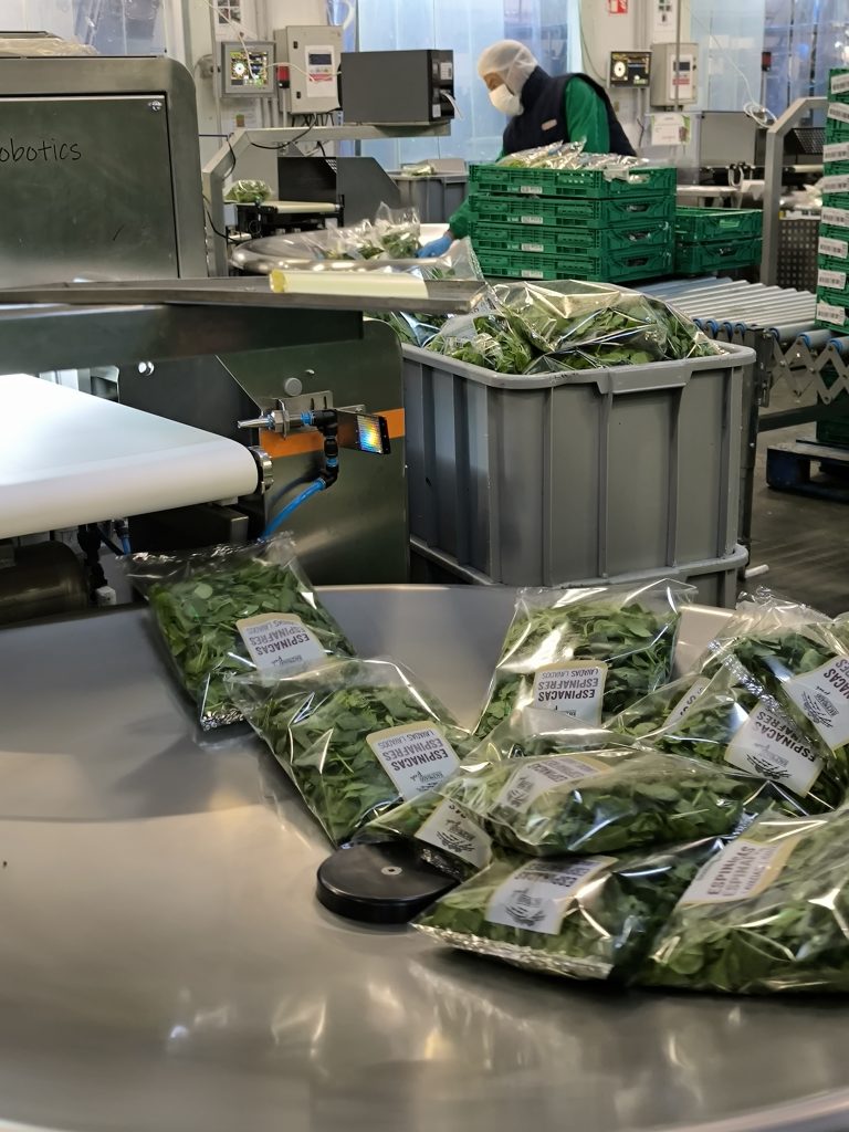 Tras una parada en Murchante para comer nos acercamos a Tudela para conocer la fábrica de vegetales de cuarta gama (verduras listas para consumir) en Tudela, también perteneciente al Grupo AN, que se dedica al proceso y envasado de vegetales de hoja verde, principalmente con la marca Diquesí. Esta planta da empleo a 300 personas, cuenta con 7 embolsadoras y procesa diariamente alrededor de 40,000 bolsas de estos productos, aprovechando la alta calidad de las verduras de Navarra para su transformación.