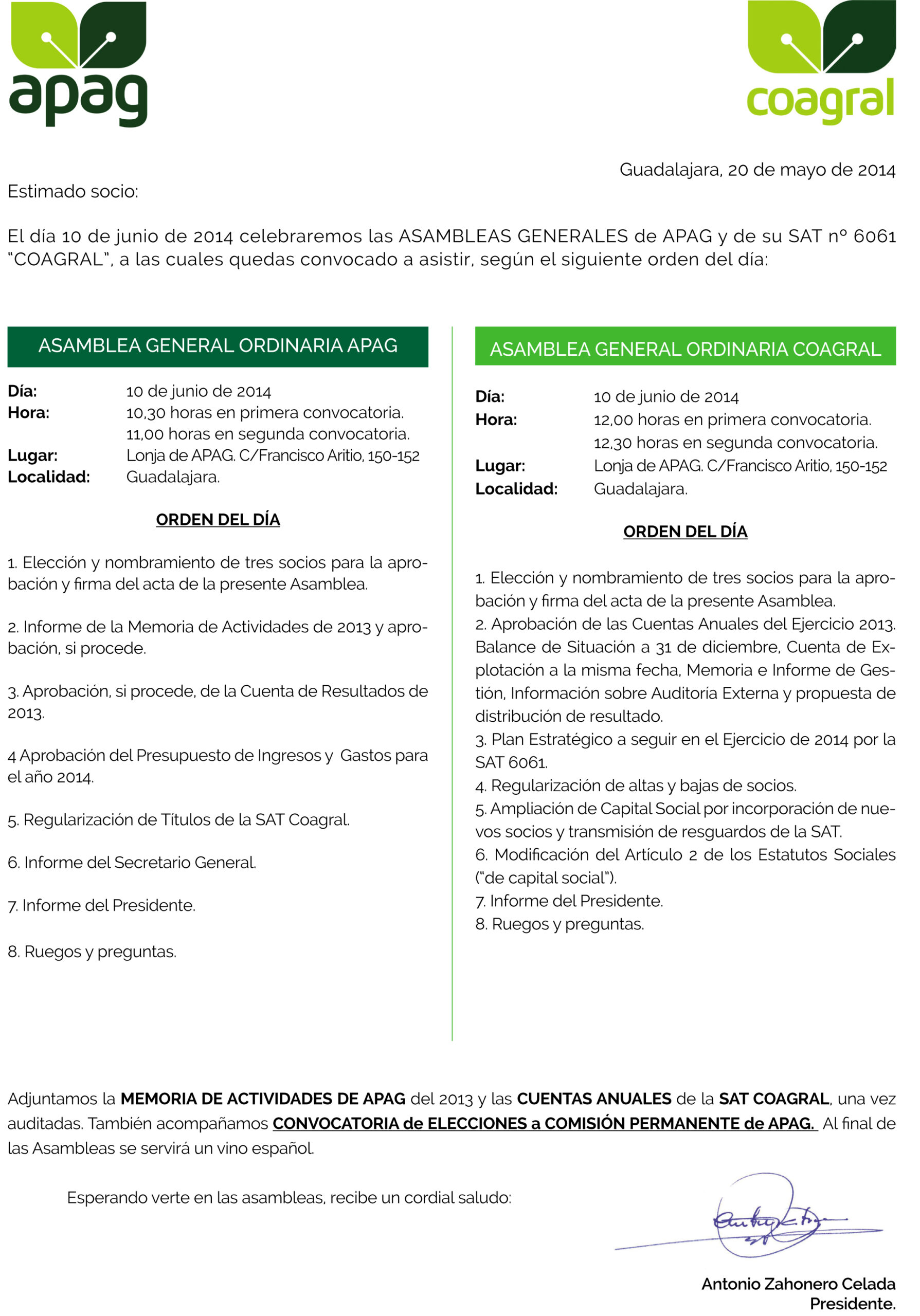 Convocatoria Asamblea APAG y COAGRAL 2013 Normas Electorales Comisión Permanente…