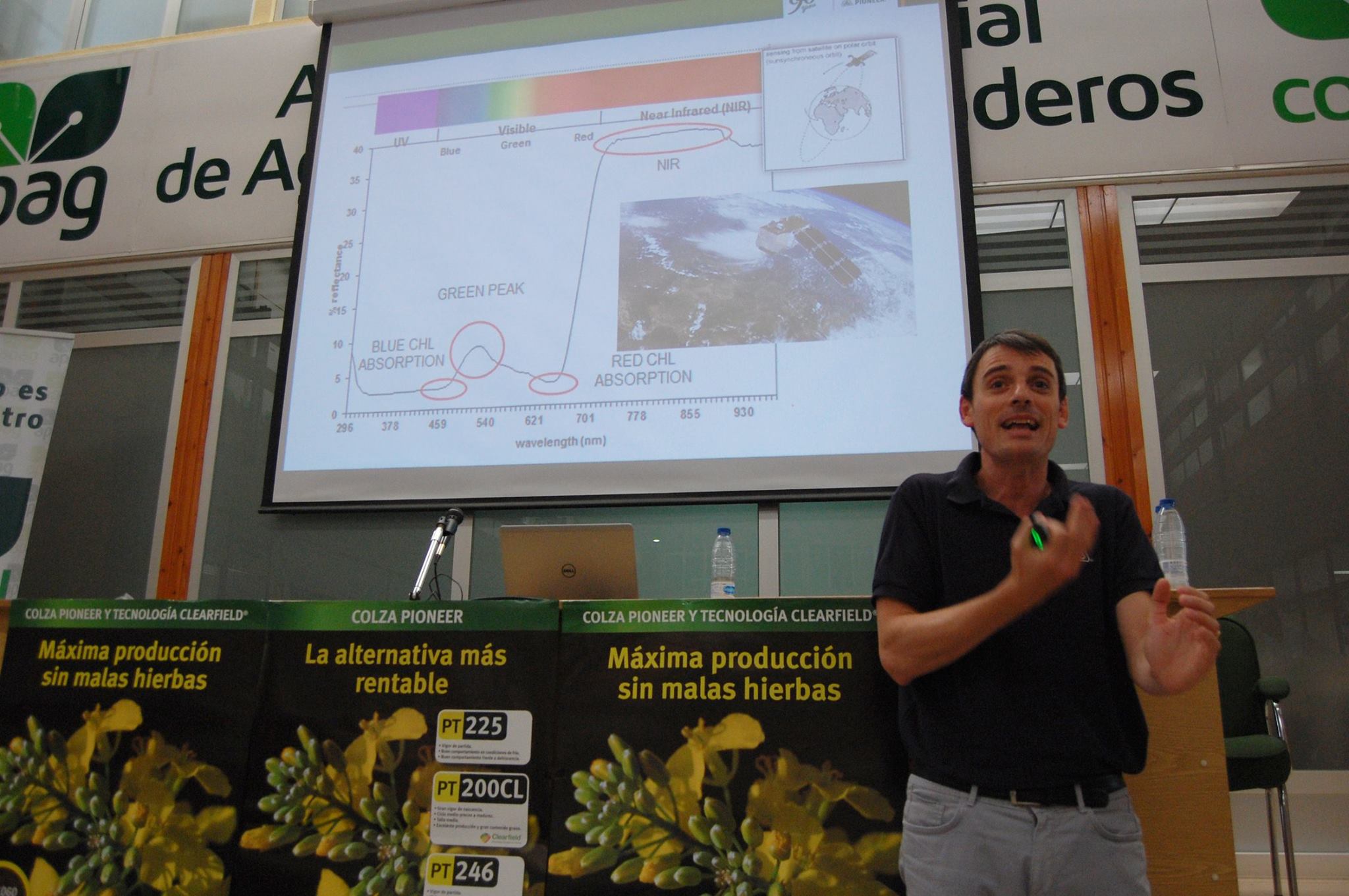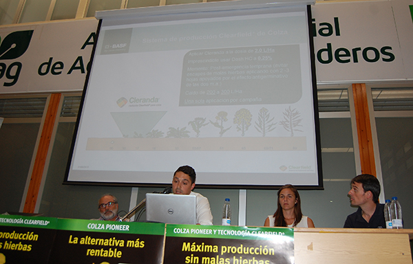 Miguel Martinez, de BASF, explicó las ventajas del nuevo herbicida Cleranda para híbridos de colza Pioneer que sean clearfield. (los PL)