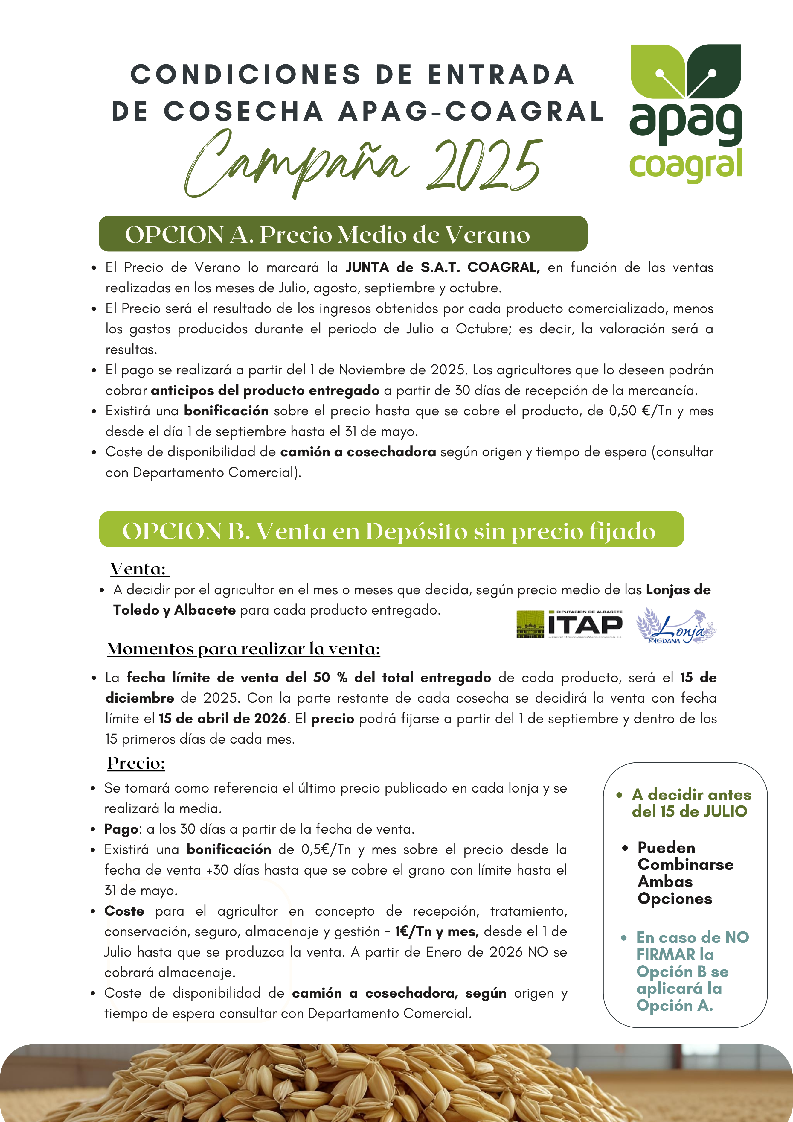 Grupo APAG » Información PAC » La SAT Coagral fija sus condiciones de entrada de cereal. Campaña 2025.