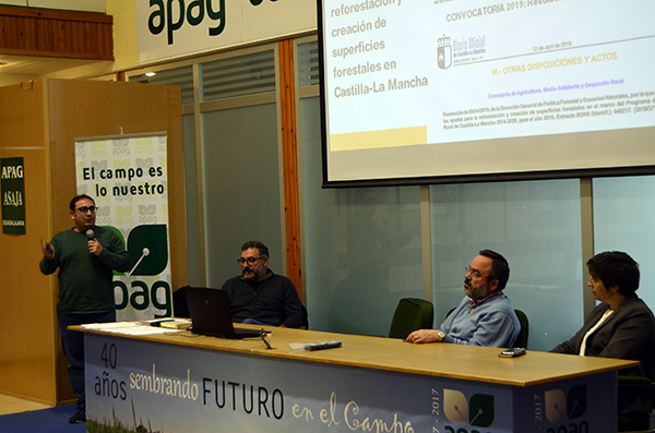 A continuación, Mario Zurita, ingeniero de montes de la empresa forestal Silvam, que junto con Micorriza va a llevar la gestión de las nuevas ayudas en APAG, explicó con detalle todos los requisitos que establece la Orden 178/2018 de 3 de Diciembre, de la Consejería de Agricultura, Medio Ambiente y Desarrollo Rural, que regula las ayudas para reforestación y creación de superficies forestales.