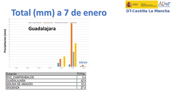 Las primeras nieves y las lluvias de estos primeros días del año le han venido al campo «como agua de Mayo», aunque si hubieran venido antes, hubiera sido mejor. Se espera que nazcan todos los cultivos de cereal aunque las colzas hubo que labrarlas y resembrarlas de cebada. En otras parcelas donde la nascencia era muy desigual, se espera que con estas aguas nacerán, porque la semilla no estaba perdida.