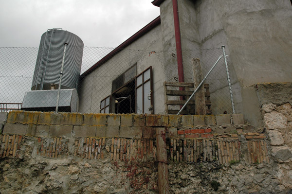 Imagen de la nave donde se produjo el robo y de la pared por donde bajaron los corderos degollado, dejando a su paso un rastro de sangre.