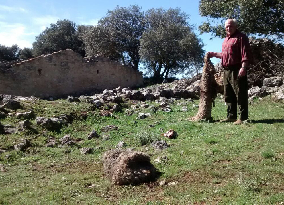 A este agricultor y ganadero de Gajanejos le han robado 14 ovejas jóvenes que dormían en una paridera. Pero los cacos han ido más allá. Con total impunidad las han matado allí mismo, las han despellejado y se han llevado las canales, dejando esparcidas por el suelo las pieles y las vísceras. No es la primera vez que Felipe recibe la visita de los ladrones de ganado. En otras ocasiones ha echado en falta ovejas y hace dos años, por estas mismas fechas, le entraron en una nave de su propiedad y se llevaron 70 corderos.