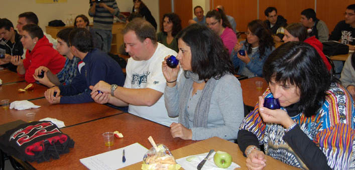 Acto sequido los alumnos han realizado una cata de aceite, que ha comenzado con una fase olfativa en la que se buscaban los posibles defectos del aceite y las propiedades positivas, pasando después a la fase gustativa, en la que los participantes debían apreciar el amargor, los picantes, los sabores o la acuosidad del producto.