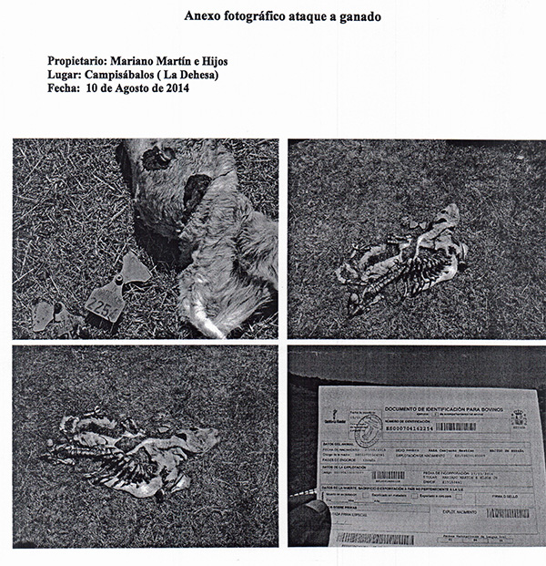 Los ataques se produjeron, según las actas sobre daños a la ganadería: El día 22 de Julio, con resultado de un ternero de cuatro meses muerto y totalmente devorado por los cuartos traseros.; El día 24 de Julio se produjo otro ataque con una ternera muerta y otra herida; El día 10 de Agosto el ganadero perdió otra ternera de dos meses y medio, que fue después devorada por los buitres. El día 19 de Agosto de madrugada, los lobos atacan de nuevo matando a una ternera de dos meses, con mordeduras en vientre y vísceras; El día 21 de Agosto otro ataque con un ternero de siete días muerto. El ganadero asegura que hay otros dos terneros muertos en dos ataques más, sin saber precisar la fecha. Todos ellos se han registrado en Campisábalos, en diferentes parajes de la localidad.