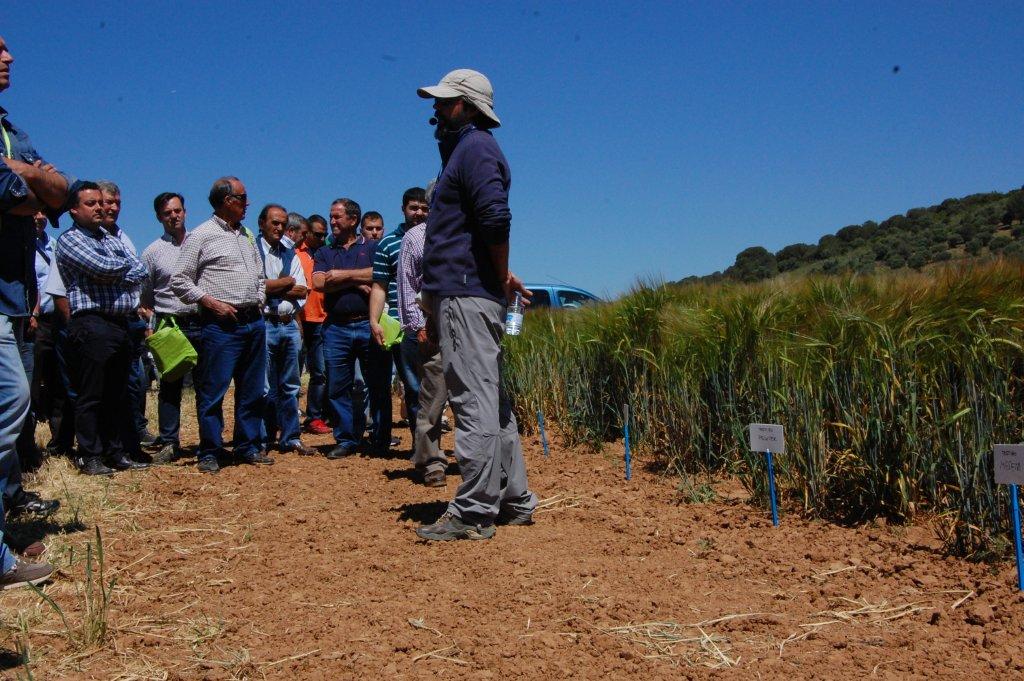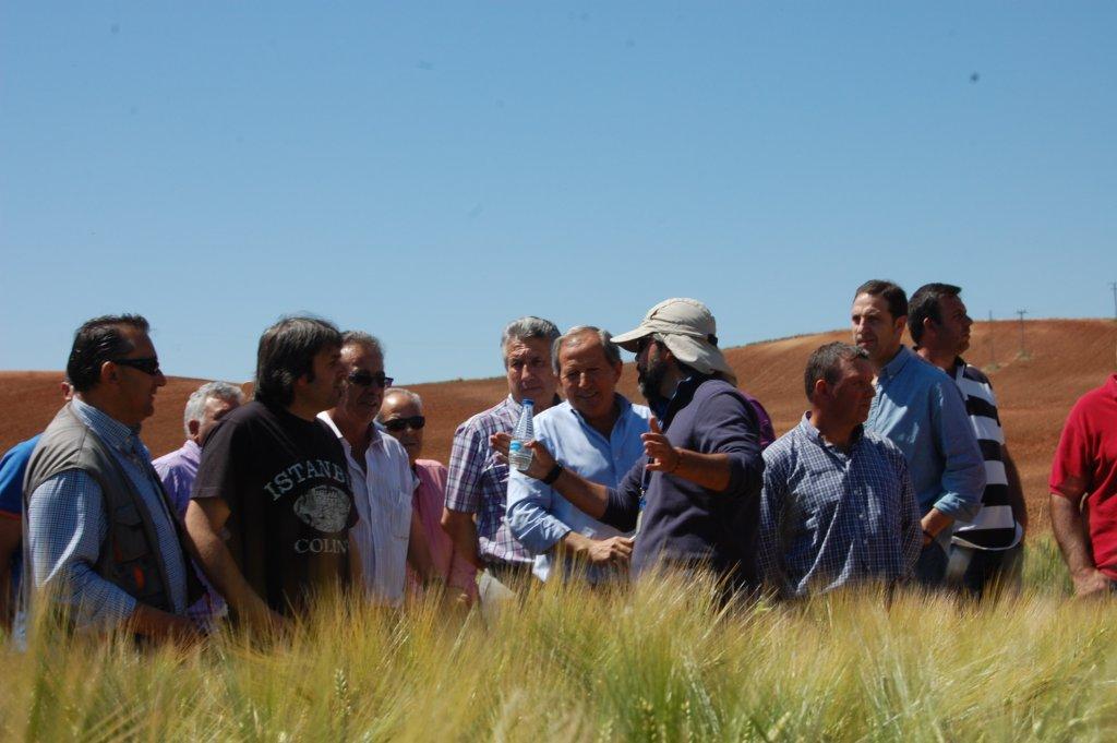 Durante la visita a los campos de ensayo del Centro Agrario de Marchamalo se vieron ensayos de cultivos extensivos de secano (diferentes variedades de R1 de: cebada de primavera, trigo de primavera, cebada de invierno, avena, triticales, trigo de invierno, centenos híbridos, veza, guisantes y garbanzos…), ensayos con las mismas variedades y distintos tratamientos fungicidas y ensayos con distintas dosis de siembra. Los agricultores pudieron ver in situ el estado de los cultivos, si bien el Centro Agrario organizará en el mes de Septiembre una jornada de presentación de resultados.