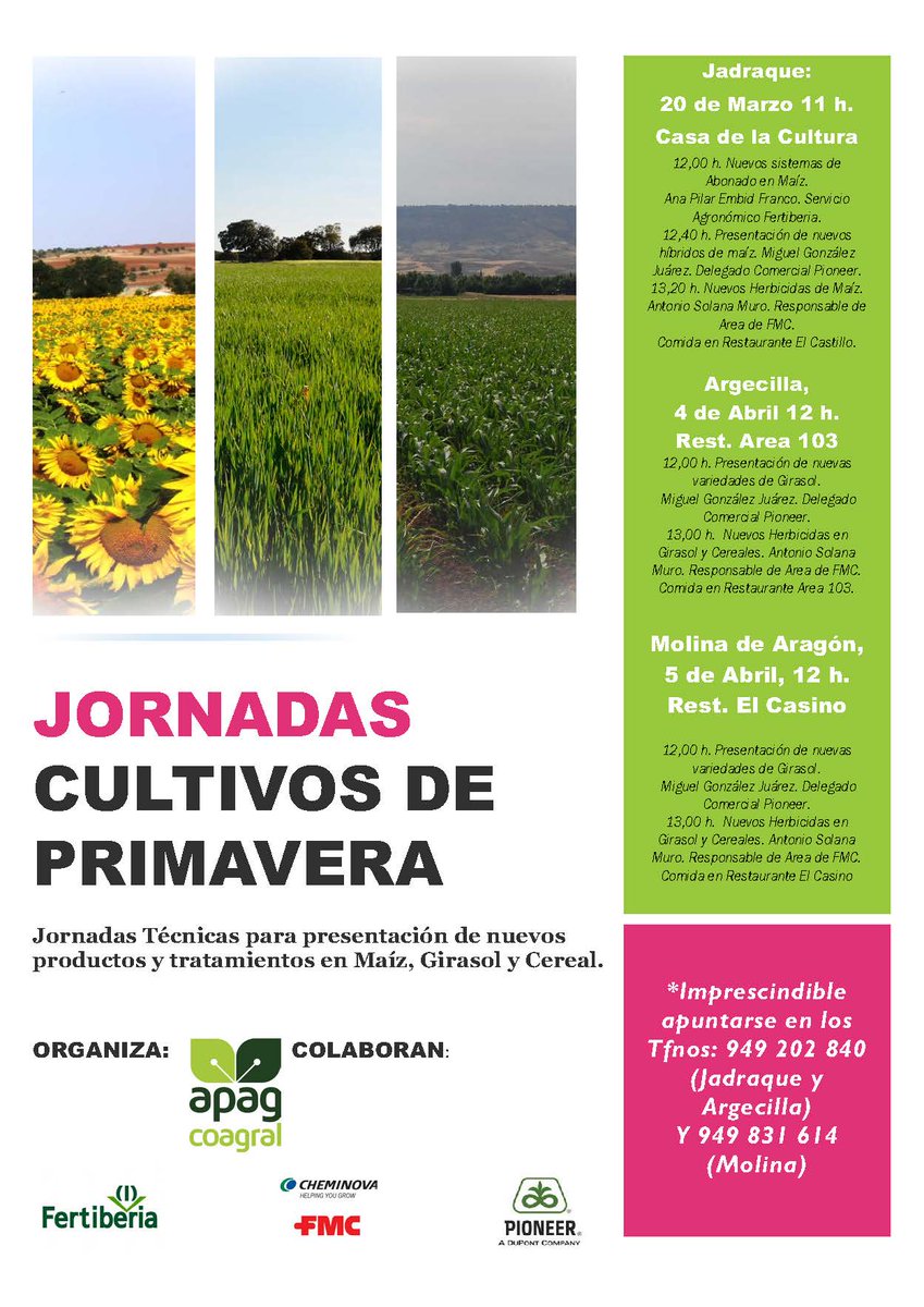 Las jornadas tendrán lugar el día 4 de Abril en Argecilla y el día 5 de Abril en Molina de Aragón, y cuentan con la colaboración de los técnicos de Pioneer y FMC.